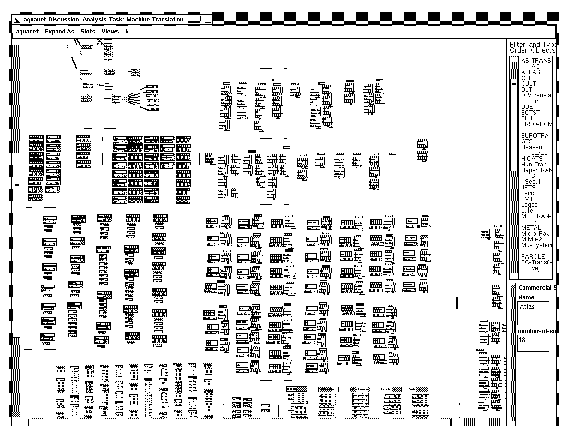 Most of the remaining work areas served as a means of grouping like items together in a particular context. Areas 8 and 9 are compact lists of what we felt to be the major research projects, minor research projects, major commercial ventures, and minor commercial ventures. These lists are easily distinguishable by color on the display (although not in Figure 4). Area 10 brought together systems with the people who were central to their development, and Area 7 was used to infer who central researchers were (from their collected publications). Together these areas were used to trace the flow of research ideas, possibly into commercial products.